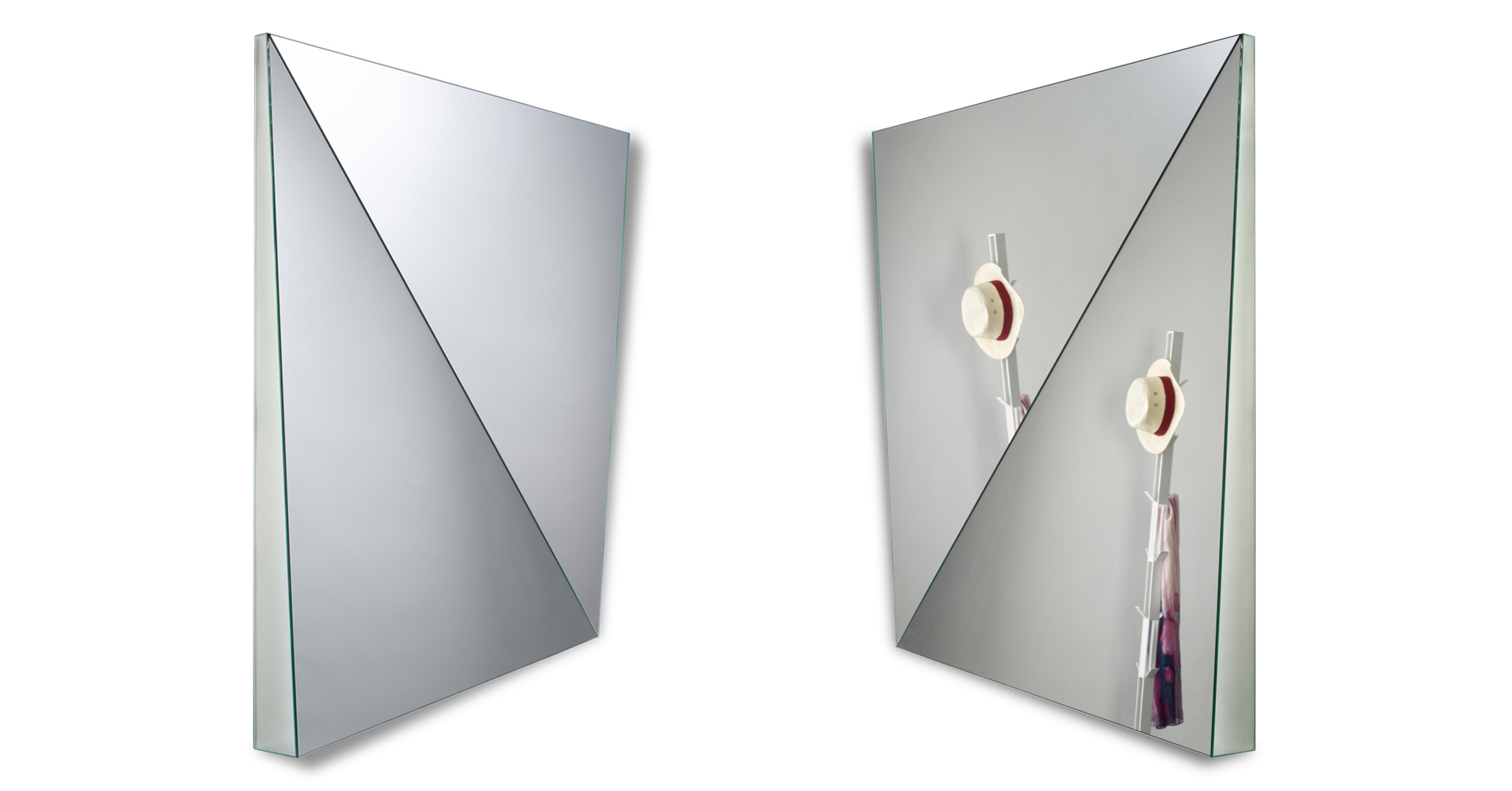 El espejo Diagonal se caracteriza fundamentalmente por el efecto óptico provocado al tener una superficie frontal facetada dividida por una línea diagonal en 2 partes iguales, con una sutil diferencia de orientación entre ellas. Por ello estos 2 planos triangulares de espejo muestran siempre su imagen reflejada con 2 perspectivas diferentes. Las caras laterales también están revestidas con el mismo material, lo que proporciona a este elemento un marcado carácter corpóreo.